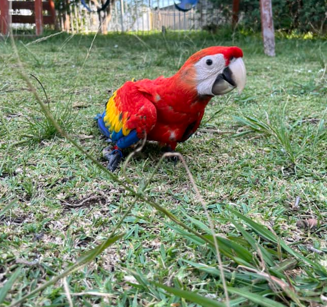 Dieses 12 Monate alte Scarlet Macaw-Weibchen beeindruckt mit ihrem prächtigen rot-gelb-blauen Gefieder und ihrem freundlichen, neugierigen Wesen. Sie ist handaufgezogen, futterfest und menschenbezogen, ideal für Familien oder erfahrene Papageienliebhaber, die einen jungen, intelligenten und sozialen Großpapagei suchen.